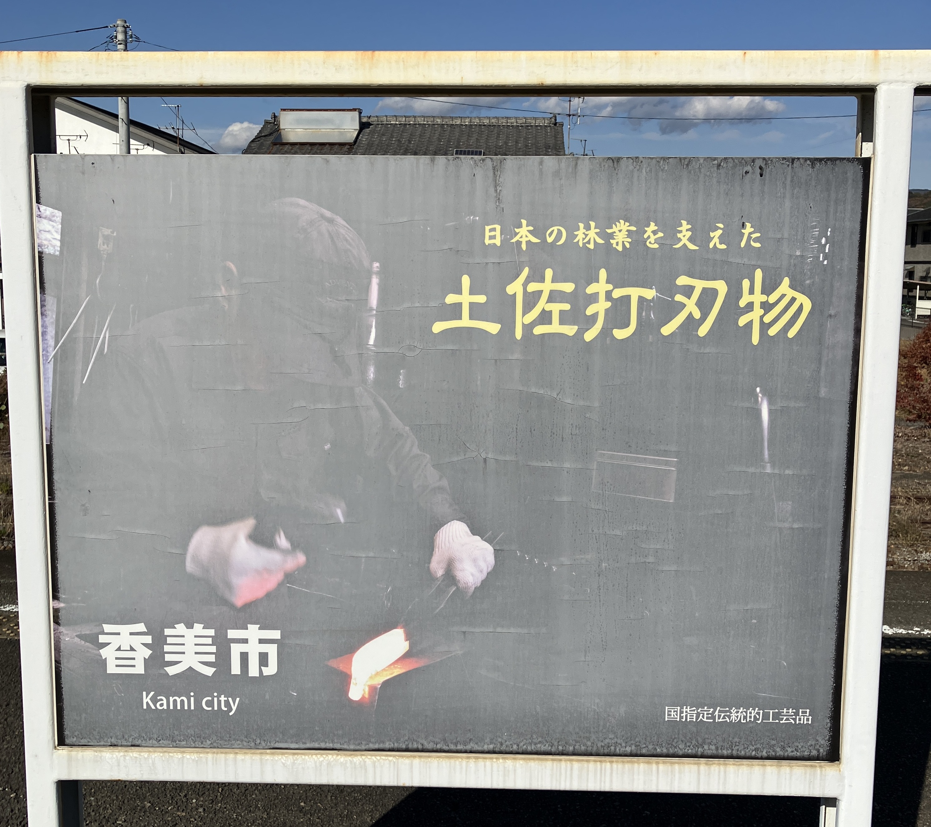 駅のホームにて。「日本の林業を支えた土佐打刃物」とあります。 -------- 2024年12月21日 |