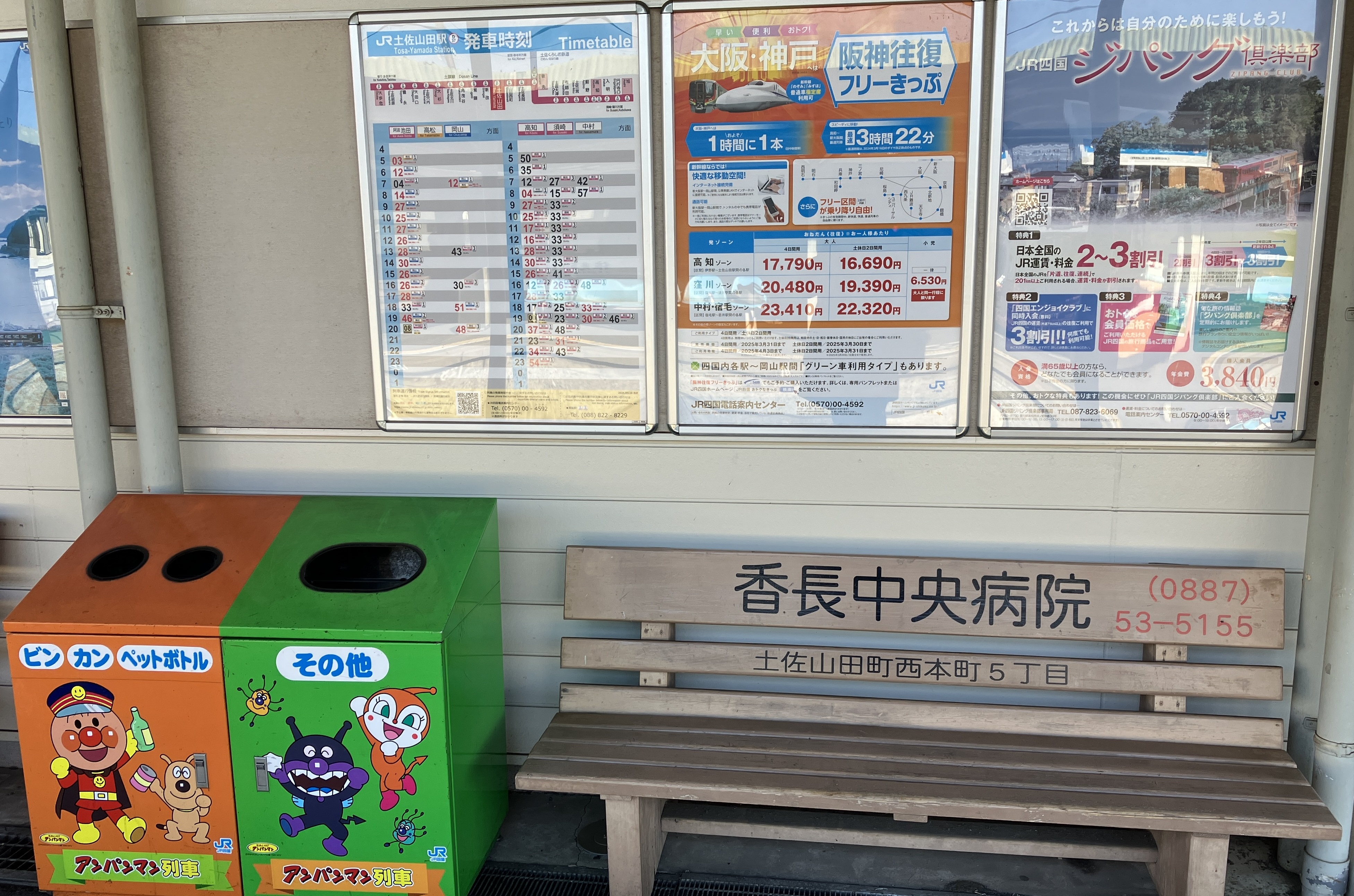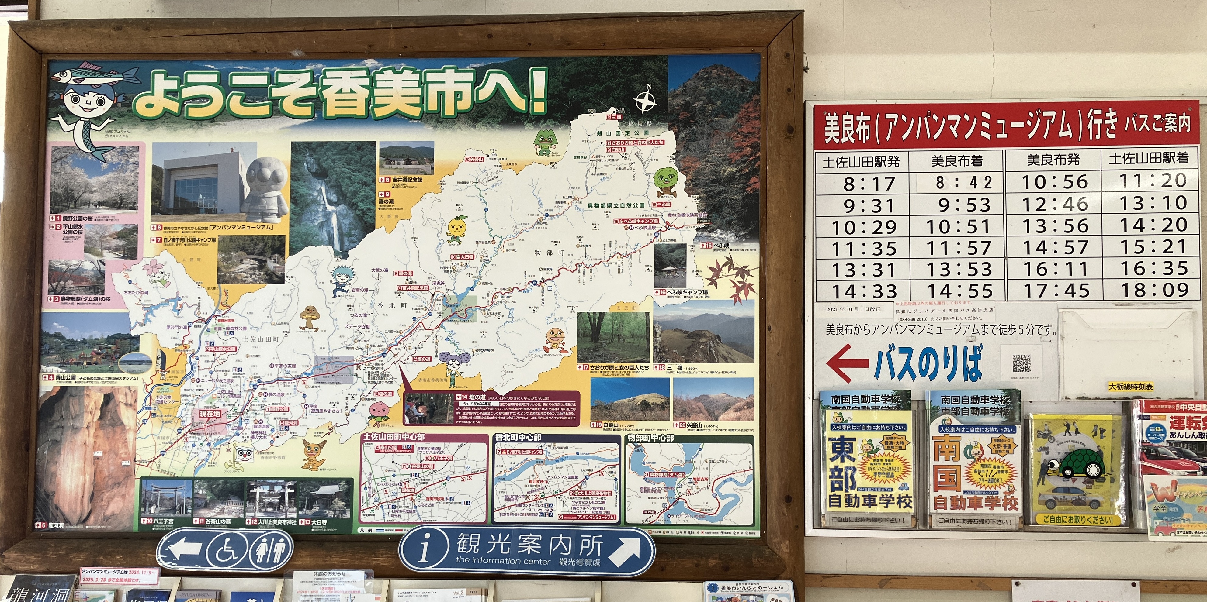 改札を出たらそこはようこそ香美市へ!でした。アンパンマンミュージアムへのバスの時刻表など。 -------- 2024年12月21日 |